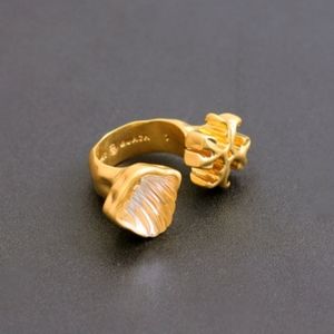 Authentic Tory Burch Roxanne ring; size 7; brand new, never worn because it was too small; original price was $148; excellent condition; no wear/tear or imperfections; also comes with the purple velvet pouch for the ring