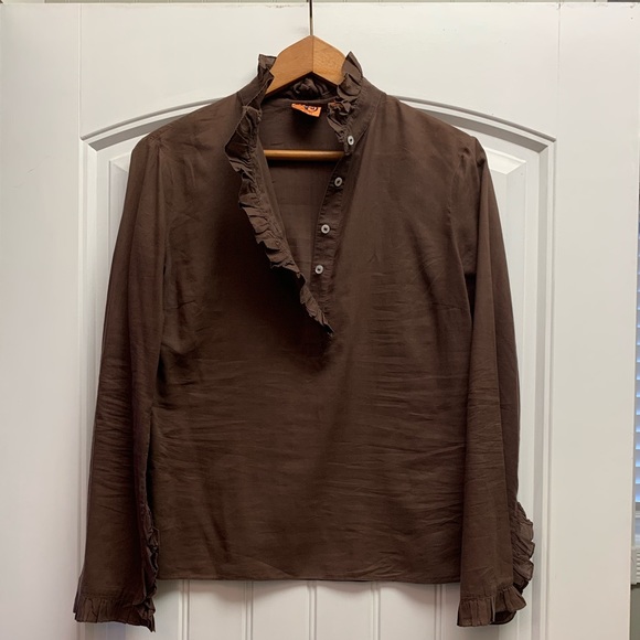 Tory Burch ruffle neck popover. Super soft, excellent used condition. Size 4.