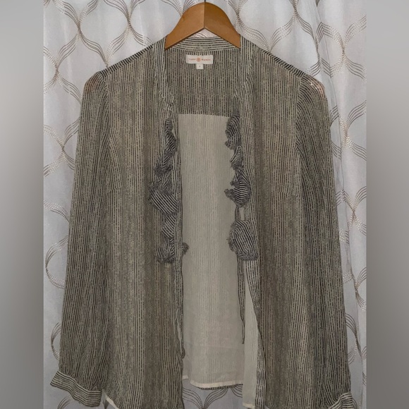 Tory Burch 100% silk, button down, ruffle blouse. Size 6