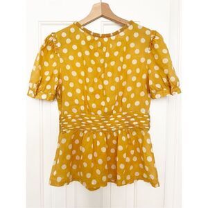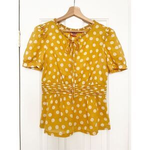 Tory Burch Ruth Top Blouse Yellow Polka Dot Size 2
