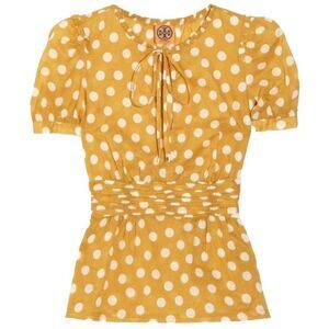 Tory Burch Ruth Top Blouse Yellow Polka Dot Size 2