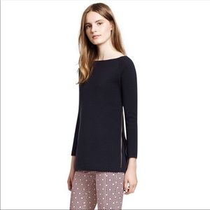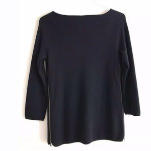 Tory Burch Rylie Womens Size XS Black Sweater Side Zip Wool Pullover Crewneck Rib Knit