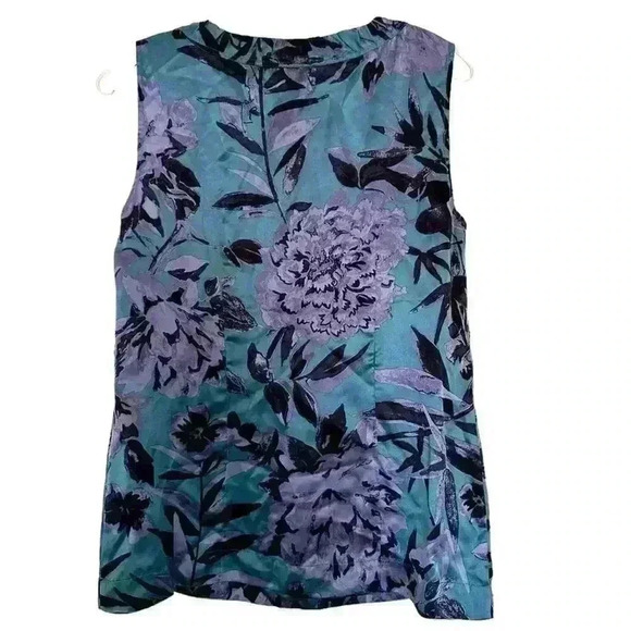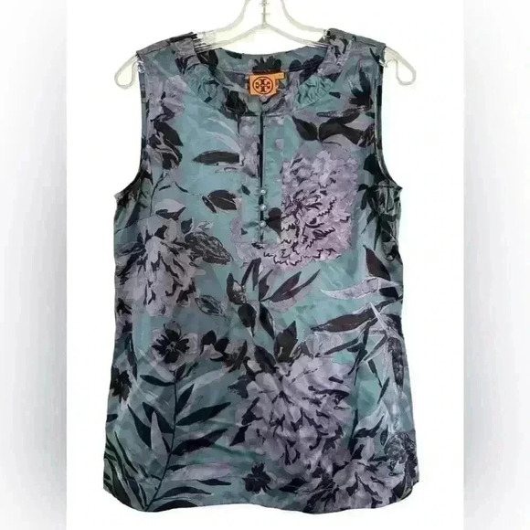 Tory Burch SLEEVELESS SATIN FLORAL TUNIC TOP FAUX COLAR WITH BUTTONS SIZE 8