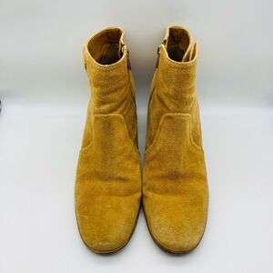 Tory Burch Sabe Caramel Suede Women’s Ankle Boots with Side Gold Logo Zip Closure Block Heels 2,5”Pre-owned Gently Used