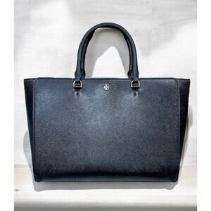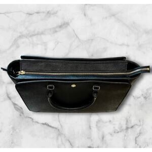 This Tory Burch Saffiano Leather Emerson Medium Zip Tote Bag is such an elegant and sophisticated Tory Burch design! Featuring durable Saffiano leather in black with gold hardware, this bag is both stylish and functional with several storage sections and an adjustable/removable strap for hand, shoulder or crossbody wear. This tote would make a great work bag and is large enough for most laptops. If you love the quality and style of Tory Burch, then this is a must have for your collection!