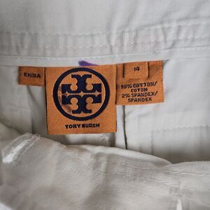 Tory Burch Sailor Pants Sz 14 Wide Leg White Canvas Button Front Nautical