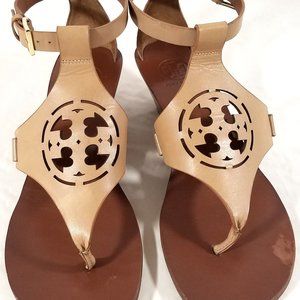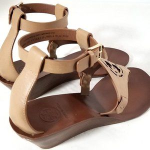 Tory Burch Zoey Leather Logo Wedge Sandal Sand color