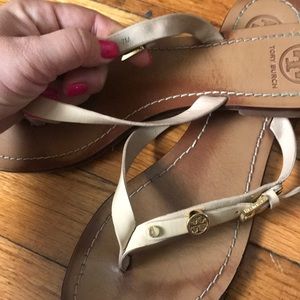 Tory Burch monogram beige sandals in excellent condition. Size 7.