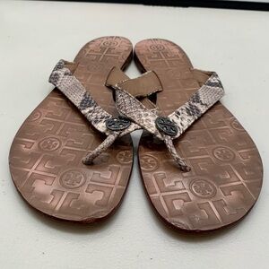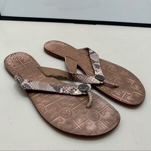 Tory Burch Sandals Adult Size 11M Brown Thora Snake Print Leather Thong Women