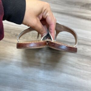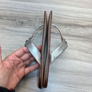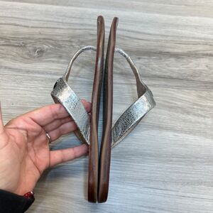 Tory Burch Sandals Cameron Size 7M Pewter Croc Embossed Leather Thong Flats