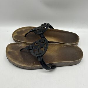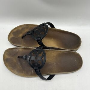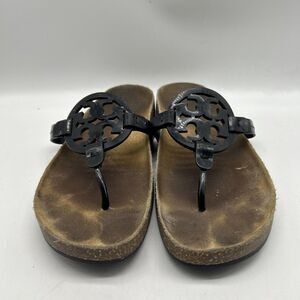 Tory Burch Sandals Womens 11M Miller Cloud Black Patent Leather Flat Flip Flop