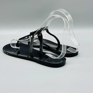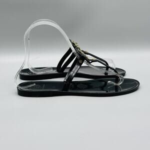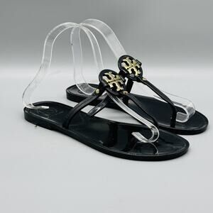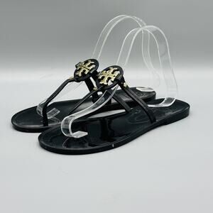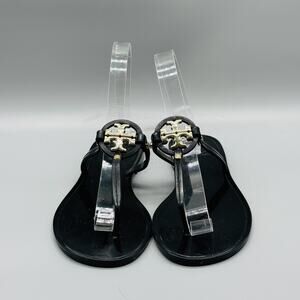 Tory Burch Sandals Womens 6 Black Mini Miller Jelly Thong Flip Flop Gold Logo