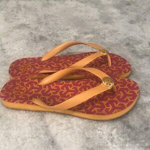 Tory Burch Sandals Womens EU 39 Us 9 Orange Pink Flip Flop Shoes Logo Medallion