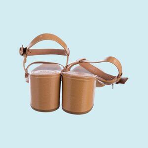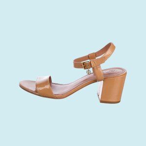 Tory Burch Sandals Women's Size 11 Nude Patent Leather Ankle Strap Block Heel