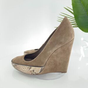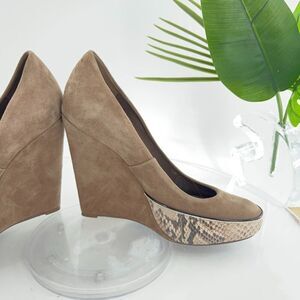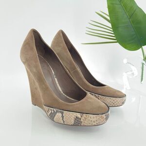 Tory Burch Sandra Pump Women's Size 8 Brown Leather Wedge Heel Platform Phython