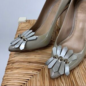 ❤️Lovely Tory Burch Sapato AURORA Patent Wood 105mm Pump