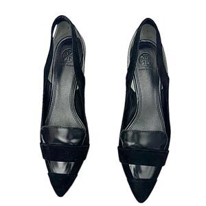 Tory Burch Saray Kitten Heels – Black Leather & Suede – Women’s Size 9.5