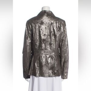 Tory Burch Sargent Pepper Distressed Leather Silver Jacket sz 4