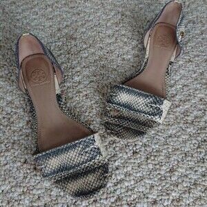 Tory Burch Savannah Snakeskin Print Flat Sandals size 7M