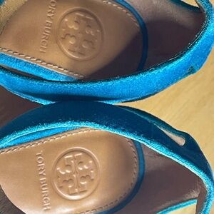 Tory Burch Savannah Suede Wedge Ankle Strap Sandal Turquoise