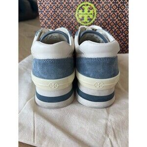 Tory Burch Sawtooth Logo Ivory Blue Low Top Sneaker Trainer Shoes 7.5