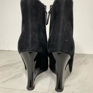 Tory Burch Sculpted Wedge Heel Pointed Toe Black Suede Booties 6 1/2 M