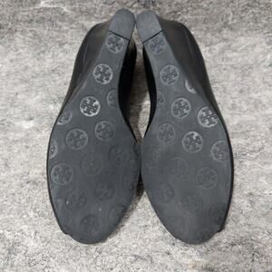 Tory Burch Selma Open Toe Wedge Women's Size 9.5 Black Leather Slip-On Designer