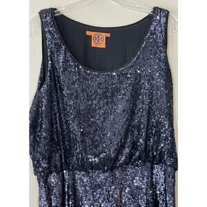 Tory Burch Sequin Dress Size Medium Alton Blue Belted Sparkle Evening Glam