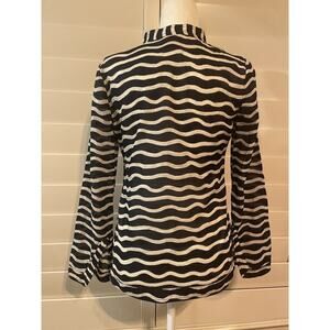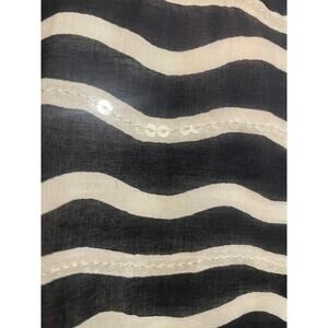 Tory Burch Sequined Tunic Top Navy White Striped Long Sleeve Blouse Popover 2 XS
