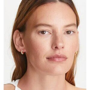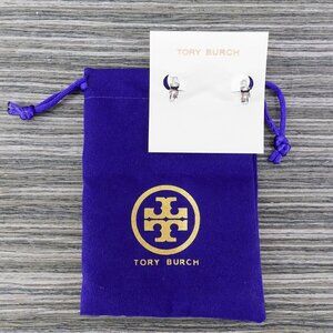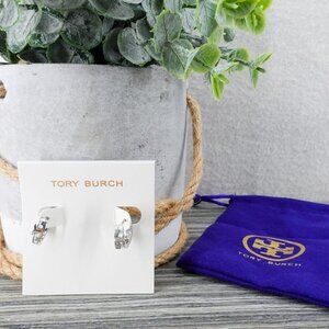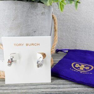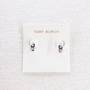 Tory Burch Serif-T Enamel Huggie Hoop Earrings Silver/Ivory OS