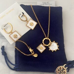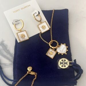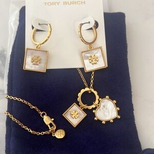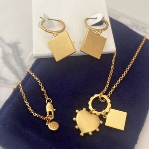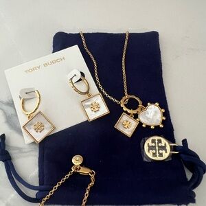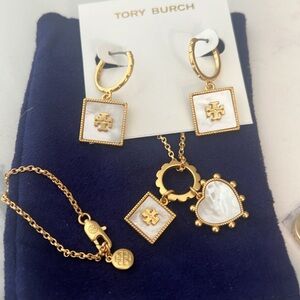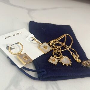 Brand New Beautiful Tory Burch Heart and Square Necklace and Earrings In MOTHER OF PEARL great gift for Mother's Day super cute includes dust bag necklace 18 inch.