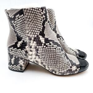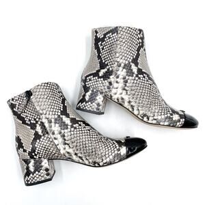 Tory Burch Shelby Bootie Snake Print Patent Leather Cap Toe Block Heel Sz 8