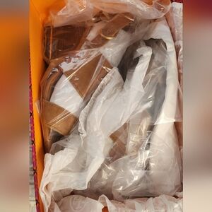 Color is "Ambra" with wooden heel and gold hardware/accents. Brand new in box. (no dust bag)