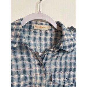 Tory Burch Shirt Womens Size 4 Blue Brigitte Button Down Top