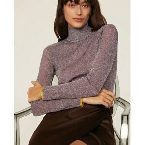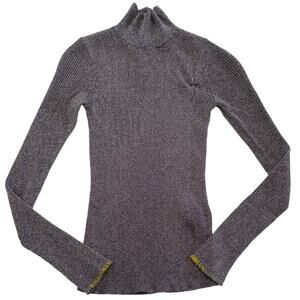 Tory Burch Shirt Womens X Small Purple Sparkle Metallic Knitted Turtleneck