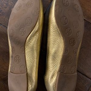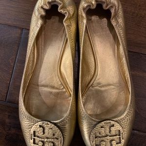 Tory Burch Shoes Minnie Travel Ballet Flats Size 8M Gold Leather