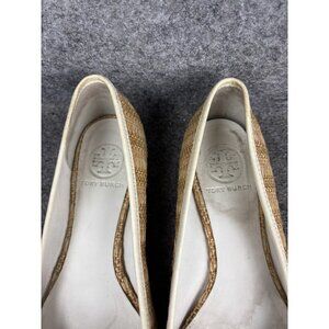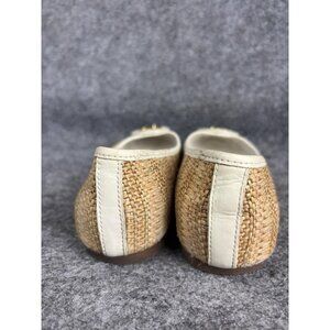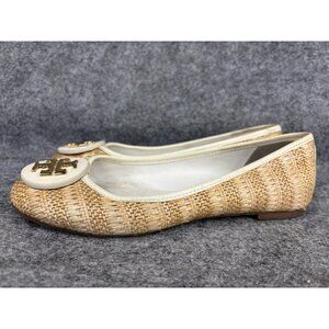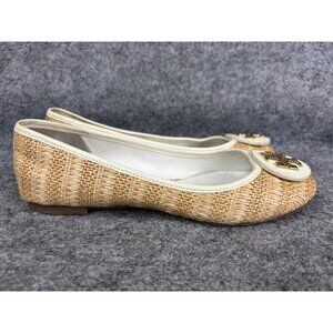 Tory Burch Shoes Womens Size 8 Natural Raffia Woven Logo Ballet Flats White Gold