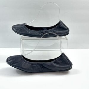 Tory Burch Shoes Womens Size 8 Navy Blue Eddie Leather Ballet Flats Logo Heel