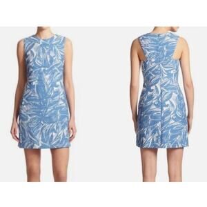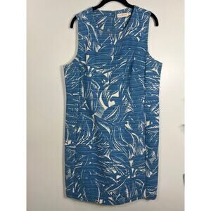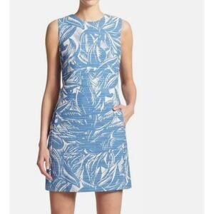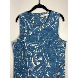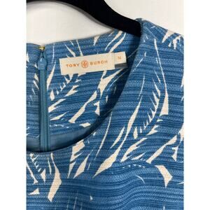 Tory Burch Short Dress 14 Gulf Shore Tabora Blue & Cream Linen Resort Vacation