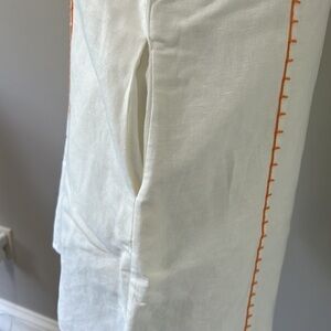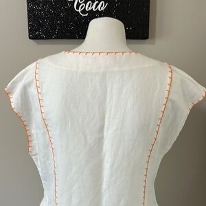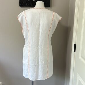 Tory Burch Short Tunic Linen Swim Cover Up White Orange Relaxed Fit Mini Sz S