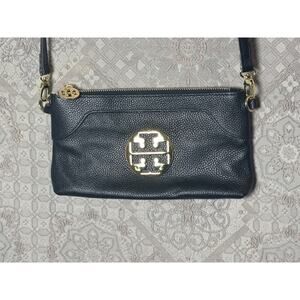 Tory Burch Shoulder Bag Clutch Black Leather EUC Crossbody Interior Wallet