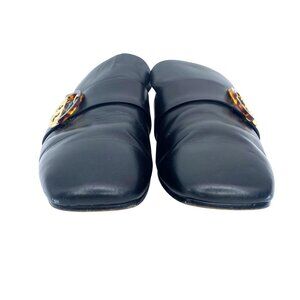 Tory Burch Sidney backless loafers black leather gold-tone heel/logo buckle sz10