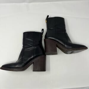 Tory Burch Sierra Heeled Ankle Boot Black Leather Womens Size 6