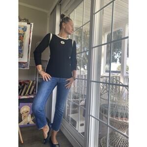 Tory Burch Signature Merino Wool Black Patch Sweater M