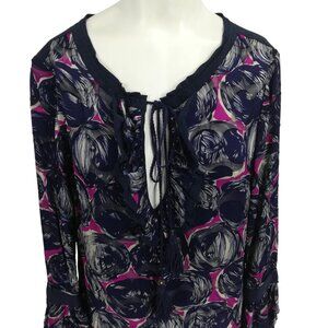 Tory Burch Silk Blend Peasant Tassel Ruffle Bell Sleeve Blouse Size 10 Shirt