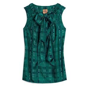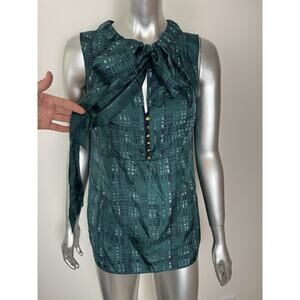 Tory Burch Silk Bow Tie Top Blouse Sleeveless Green Saffield xs 2
