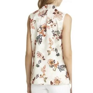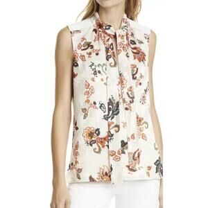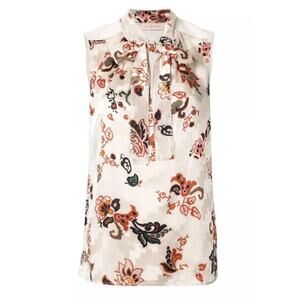 Tory Burch Silk Burnout Shell Bow Top | Ivory Mountain Paisley | SZ 0