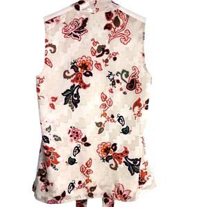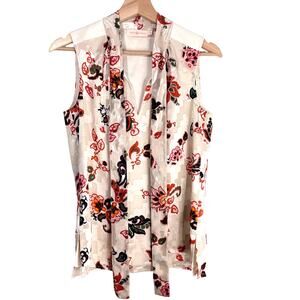 Pull on Tory Burch top great to dress up or down. The ties in the front can be tied into a bow for coquette style or simple tie to give it scarf like neck detail. Floral paisley print perfect for going into spring and summer. This can be dressed up or down.