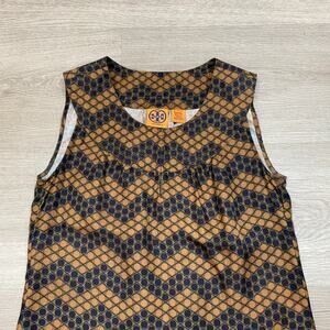 Tory Burch Silk Chevron Print Sleeveless Tank Blouse Women's 4