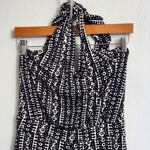 Tory Burch Silk Dark Navy White Patterned Halter Neckline Jumpsuit
